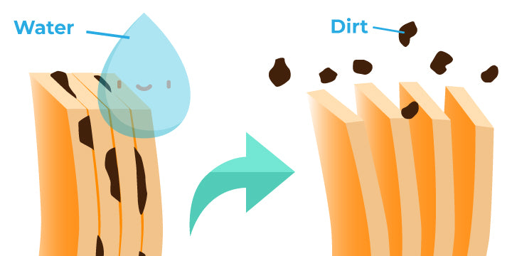 Capture the dirt and grease and it stays locked inside the fiber until you wash it with water, which makes the fiber uncurl slightly and release their dirty content. Remove usage of paper towel to clean the spillover.